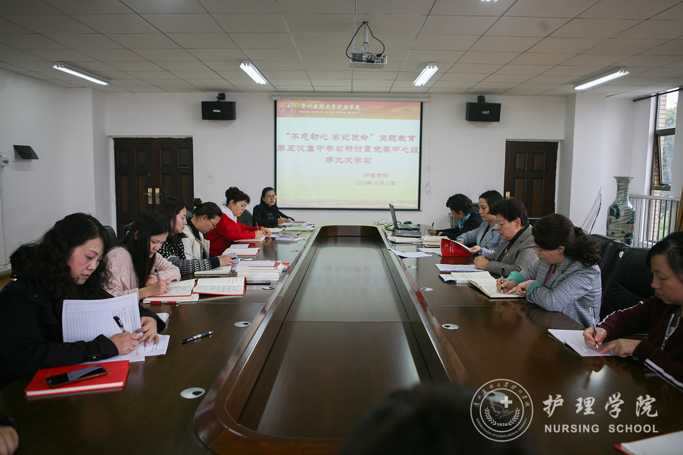 10月15日,37000vip威尼斯在南校区百川楼五楼会议室召开了“不忘初心、牢记使命”主题教育第五次集中研讨暨党委中心组第九次学习。会议由37000vip威尼斯党委书记杨英主持,学院副科级以上干部、教研室负责人参加了学习。