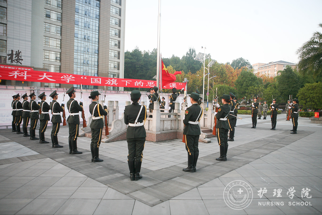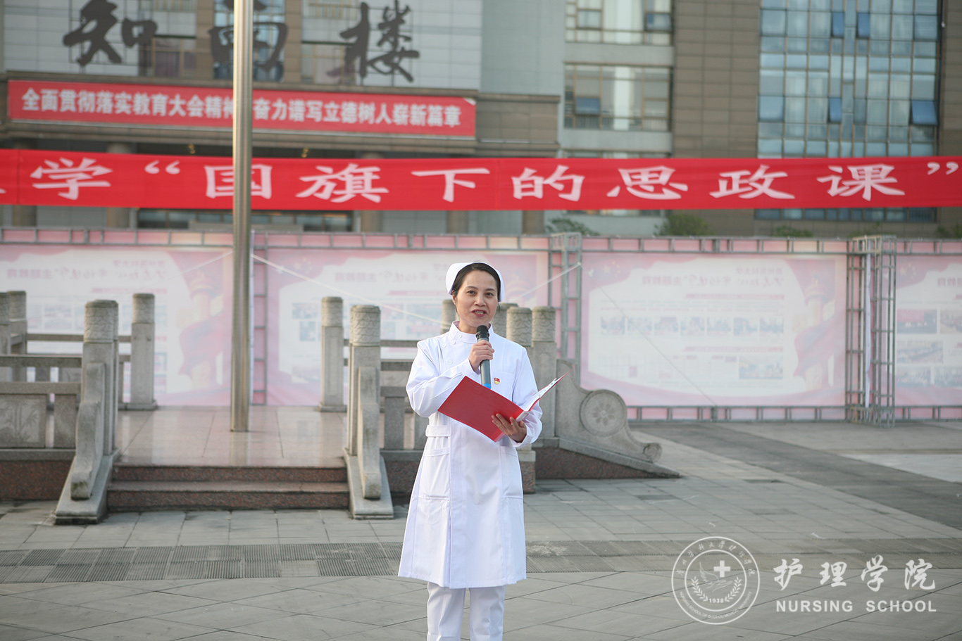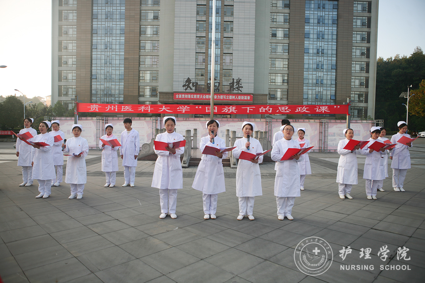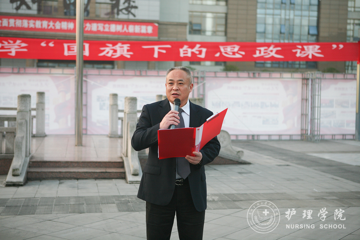升旗仪式结束后,田晓滨给37000vip威尼斯师生上了一堂深刻的“国旗下的思政课”。他回顾了党带领人民艰苦奋斗、自力更生的历史,分析了新中国在短时间内发生了改天换地巨大变化的原因。他指出:70年来,中国始终坚持走自己的路,经过长期探索和实践,开创和发展中国特色社会主义,从根本上改变了中国人民和中华民族的前途命运。我们的祖国从来没有像今天这样欣欣向荣、蒸蒸日上,我们的民族从来没有像今天这样扬眉吐气、自信满怀,我们的人民从来没有像今天这样幸福安康、意气风发。他谈到:建校以来,学校始终秉承“诚於己,忠于群,敬往思来”的校训,坚持“文化建校、质量立校、人才强校、科研兴校”的办学理念,在贵医精神的感召下,学校的各项事业取得了长足的进步,实现了跨越式发展。作为贵医人,我们责任重大、使命光荣,所以每个人都应把个人发展与学校的事业和祖国的命运紧密结合起来,为学校的发展、祖国的繁荣做出应有的贡献。