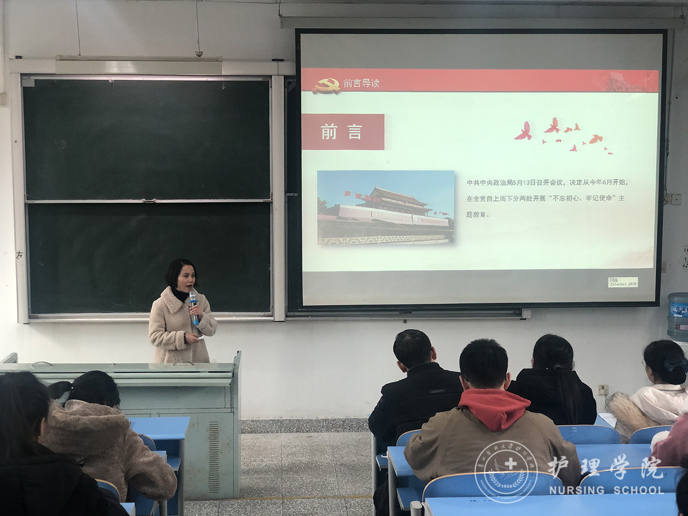 杨英还结合自己的调研成果跟大家探讨了学生党员教育成长问题,她要求全体党员要坚定理想信念,敢于负起责任与担当、敢于当好先锋模范,充分发挥共产党员的先进性,树牢“四个自信”,坚定“四个意识”,做到“两个维护”。苦练本领,认真学习专业知识,贯彻落实习近平总书记关于卫生与健康的重要论述,为健康中国建设作出应有的贡献和力量。