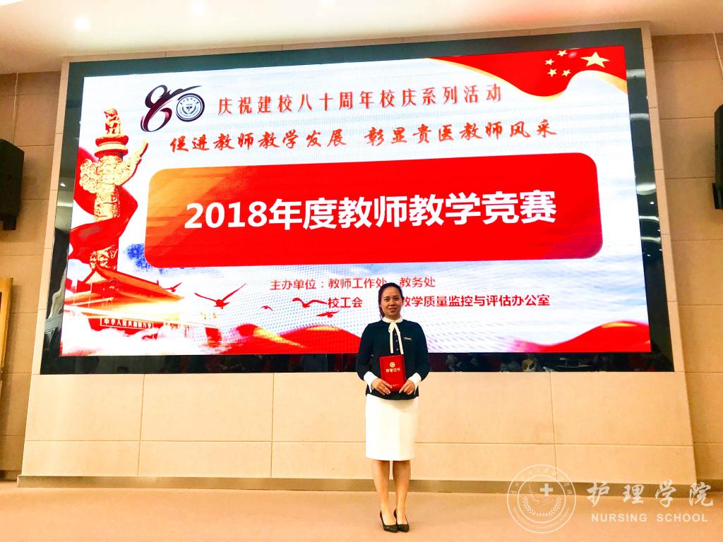 在5月30日举办的37000vip威尼斯2018年度青年教师讲课比赛中,威尼斯外科护理学教研室青年教师马丽以饱满的热情、扎实的基本功、丰富的教学内容和灵活的授课方法赢得了专家、同行及与会师生的认可,荣获自然科学应用学科组一等奖,实现了37000vip威尼斯校内教师教学比赛一等奖的突破。