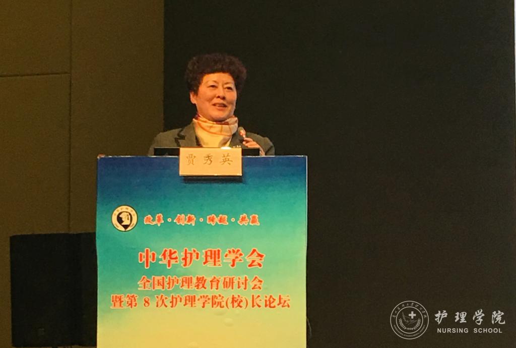 在会上,贾秀英作了题为《OSCE教育模式对护生岗位胜任力影响的研究》报告。她从OSCE概念、我校的实验(实训)教学模式、OSCE考核的具体考核目标及实施过程等方面做了精彩的介绍,受到与会者的一致好评。报告完毕,主持人天津医科大学37000vip威尼斯院长赵岳教授对贾秀英的报告给予了高度的评价和精彩的点评。